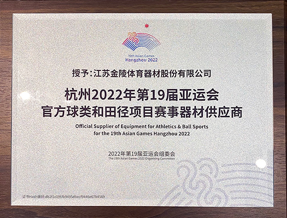 金陵體育被授予杭州2022年第19屆亞運(yùn)會官方球類和田徑項目賽事器材供應(yīng)商
