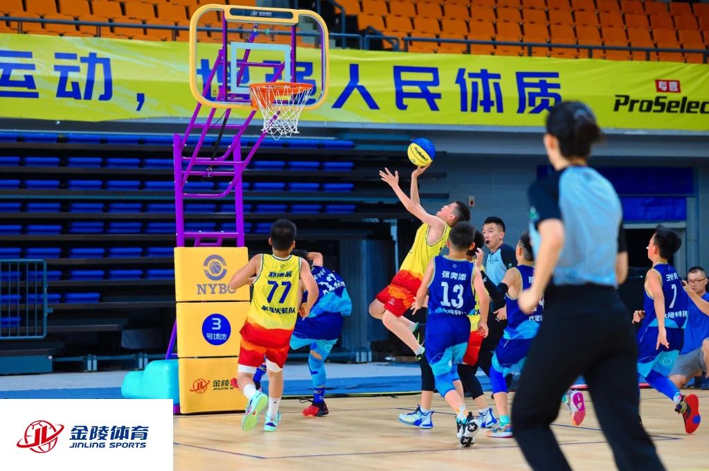 近日,2022-2023賽季NYBO青少年籃球公開賽全國總決賽開幕式在山東日照香河體育公園舉行,金陵體育新款啟明星籃球架亮相本次賽事。